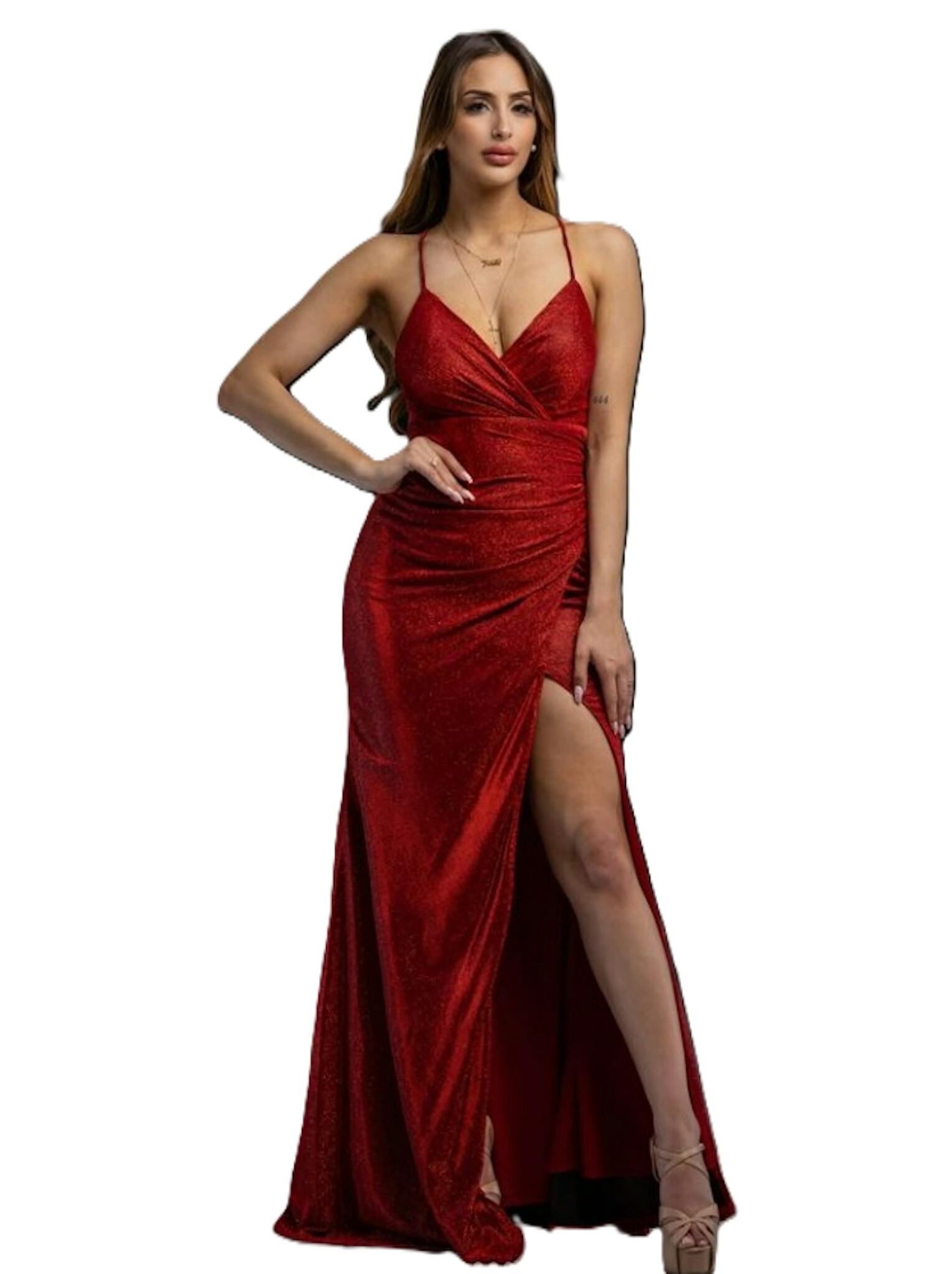 Bordeaux rode glitterjurk met split- 202648